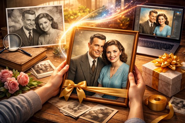Сделать подарок из старого фото с помощью нейронки для фото - это способ соединить прошлое и настоящее. Технологии искусственного интеллекта позволяют восстановить, улучшить и даже анимировать архивные изображения, придавая им новую жизнь.